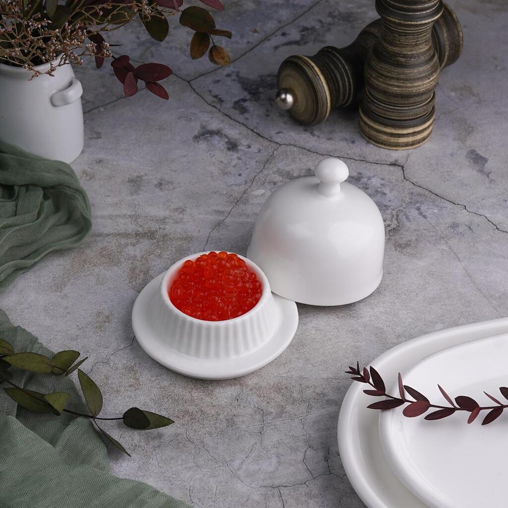 Масленка икорница 30 мл d 8,8 см h8 см с крышкой белая фарфор NEW P.L. Proff Cuisine [1]